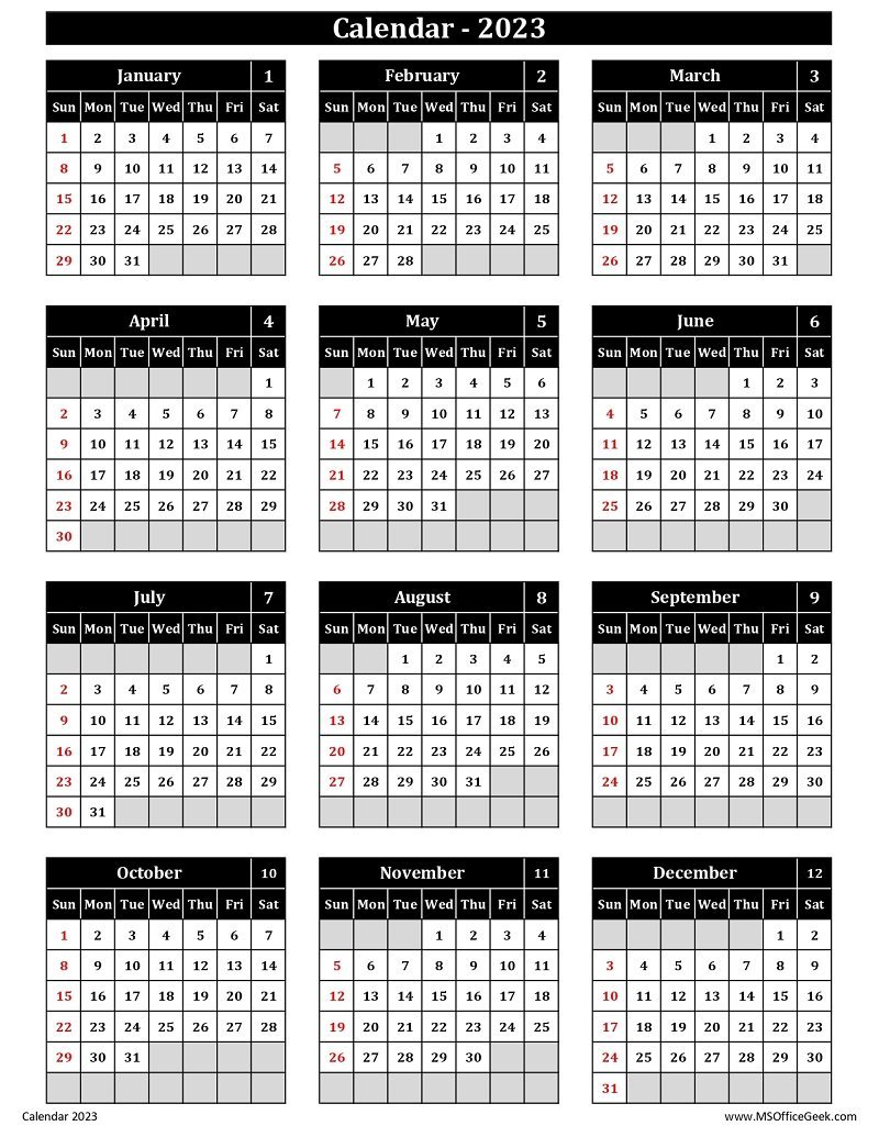 Additionally, you can download Calendar 2023 in landscape and portrait format from the link below: